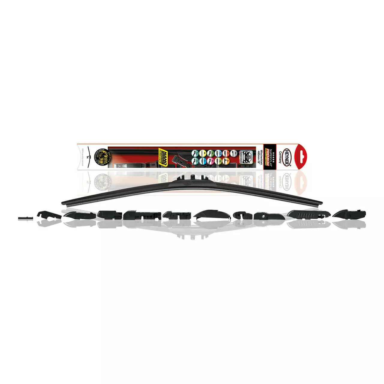 • Відсутність видимих металевих частин запобігає корозії та обмерзанню взимку. Особливо плоска конструкція не заважає обзору і не відволікає водія.