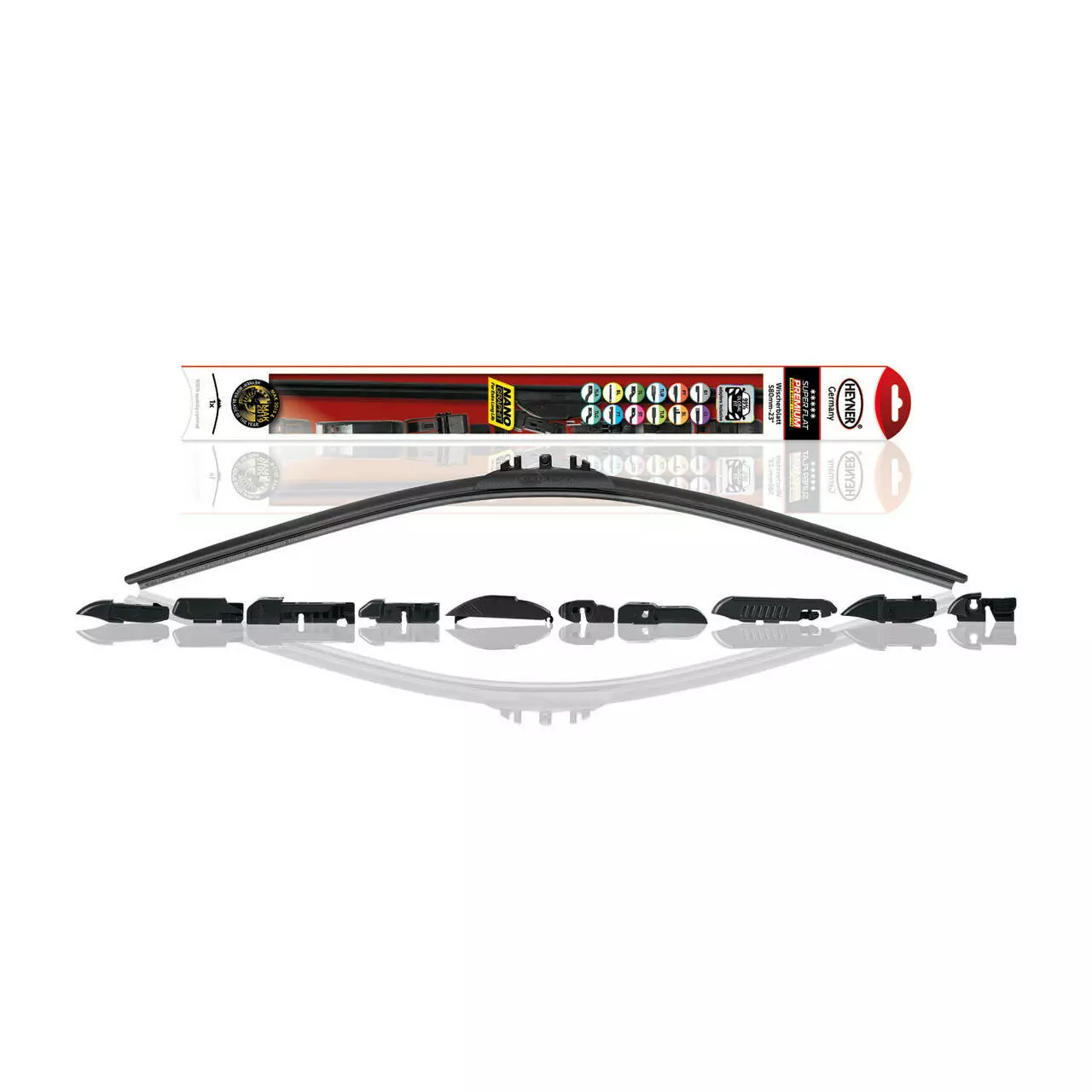 • Відсутність видимих металевих частин запобігає корозії та обмерзанню взимку. Особливо плоска конструкція не заважає обзору і не відволікає водія.