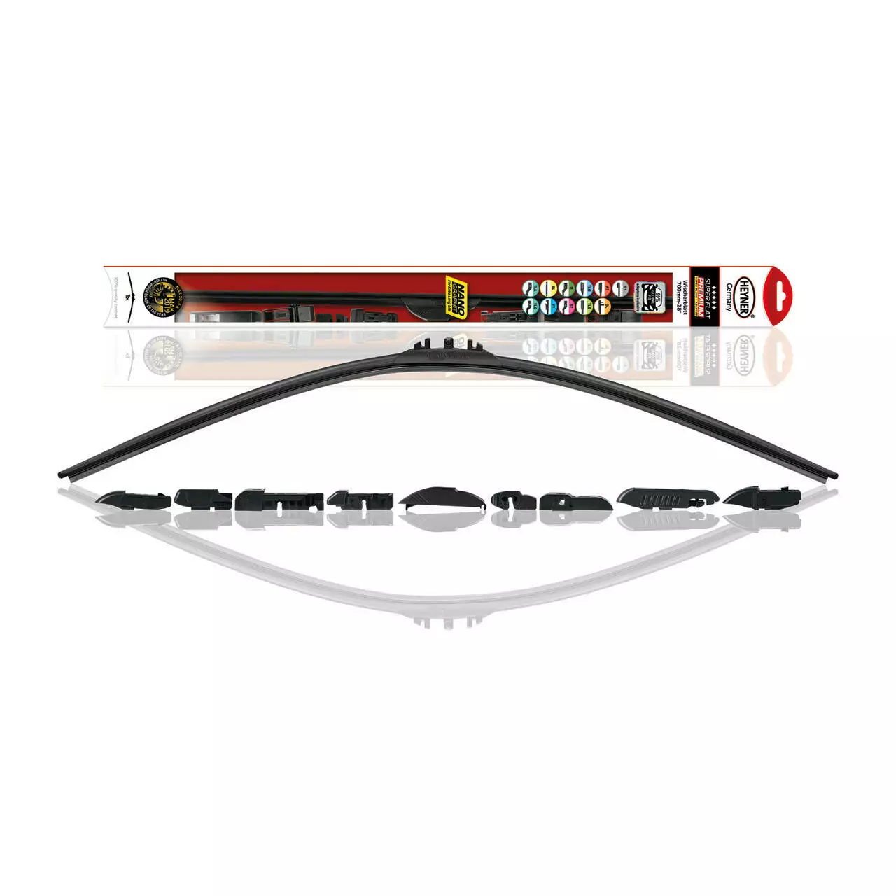 • Відсутність видимих металевих частин запобігає корозії та обмерзанню взимку. Особливо плоска конструкція не заважає обзору і не відволікає водія.