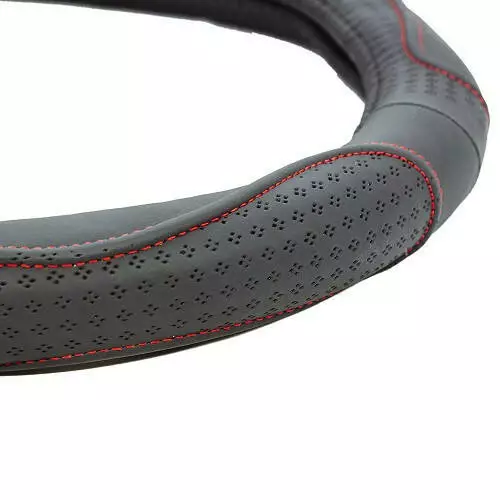 EL 105 687 / Чохол на кермо шкіряний, чорний (перфорація, червона нитка), L