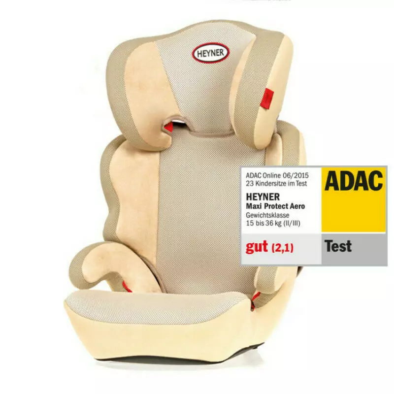 Безпека: Heyner MaxiProtect Aero SP розроблене німецькими спеціалістами та успішно пройшло краш-тести ADAC, підтверджуючи відповідність європейському стандарту ECE-R 44/04. Каркас автокрісла виготовлений зі спеціального протиударного пластику, з ребрами жорсткості, що роблять крісло надійним та безпечним. Глибокий підголовник і бокові виступи забезпечують надійний захист для голови та плечей дитини.