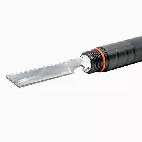 Ручка складається з трьох частин, в одній находиться ніж/пилка, у іншій – гострий наконечник для розбивання льоду, каміння чи скла.