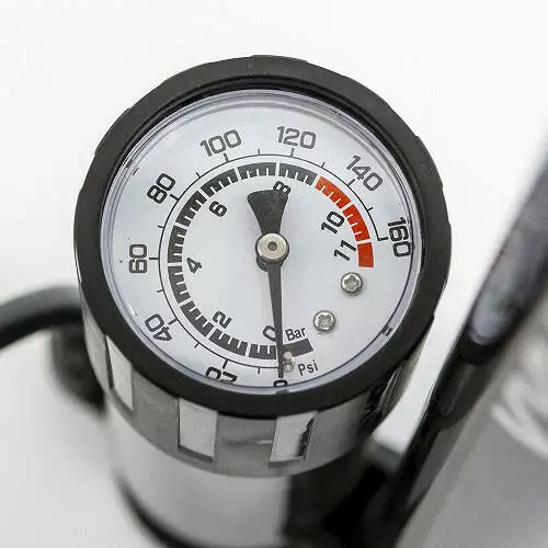 Насос оснащений міцним і надійним металевим корпусом, зручною ергономічною пластиковою ручкою, манометром і комплектом насадок.