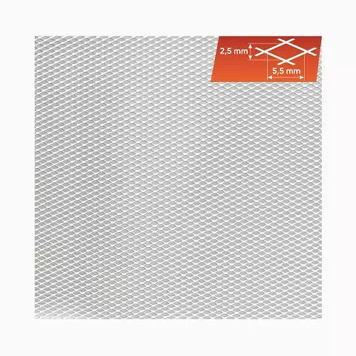 Високоякісна сітка виготовлена з алюмінію марки 1050, стандарт DIN 791. Підходить для монтажу у отворах бамперів, повітрязабірниках тощо.