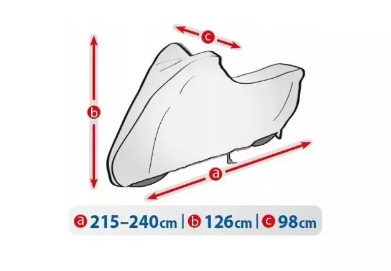 Цей тент, виготовлений у Польщі, створений для мотоциклів довжиною від 215 до 240 см. Він зроблений з високоякісного, водонепроникного та дихаючого мембранного матеріалу, що забезпечує надійний захист у будь-яку пору року. Тент ефективно захищає від дощу, снігу, бруду, пилу та ультрафіолетового випромінювання.