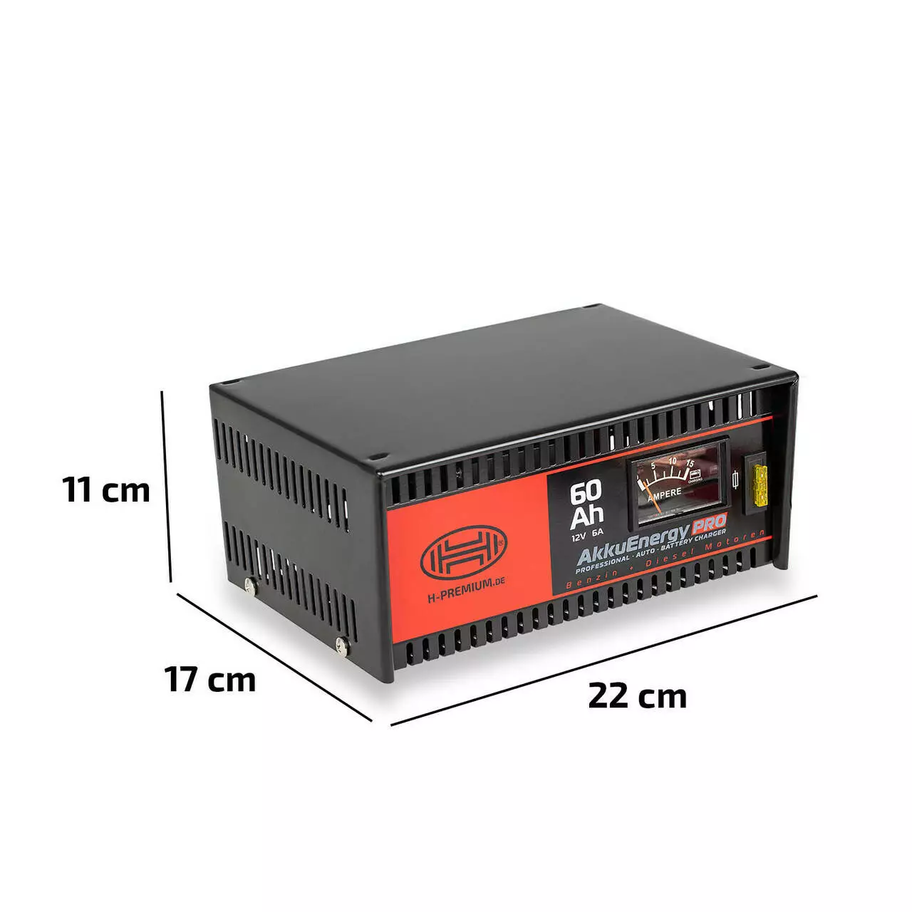 З потужністю 6 А / 12 В зарядний пристрій ідеально підходить для акумулятора ємністю від 15 до 60 Ач.